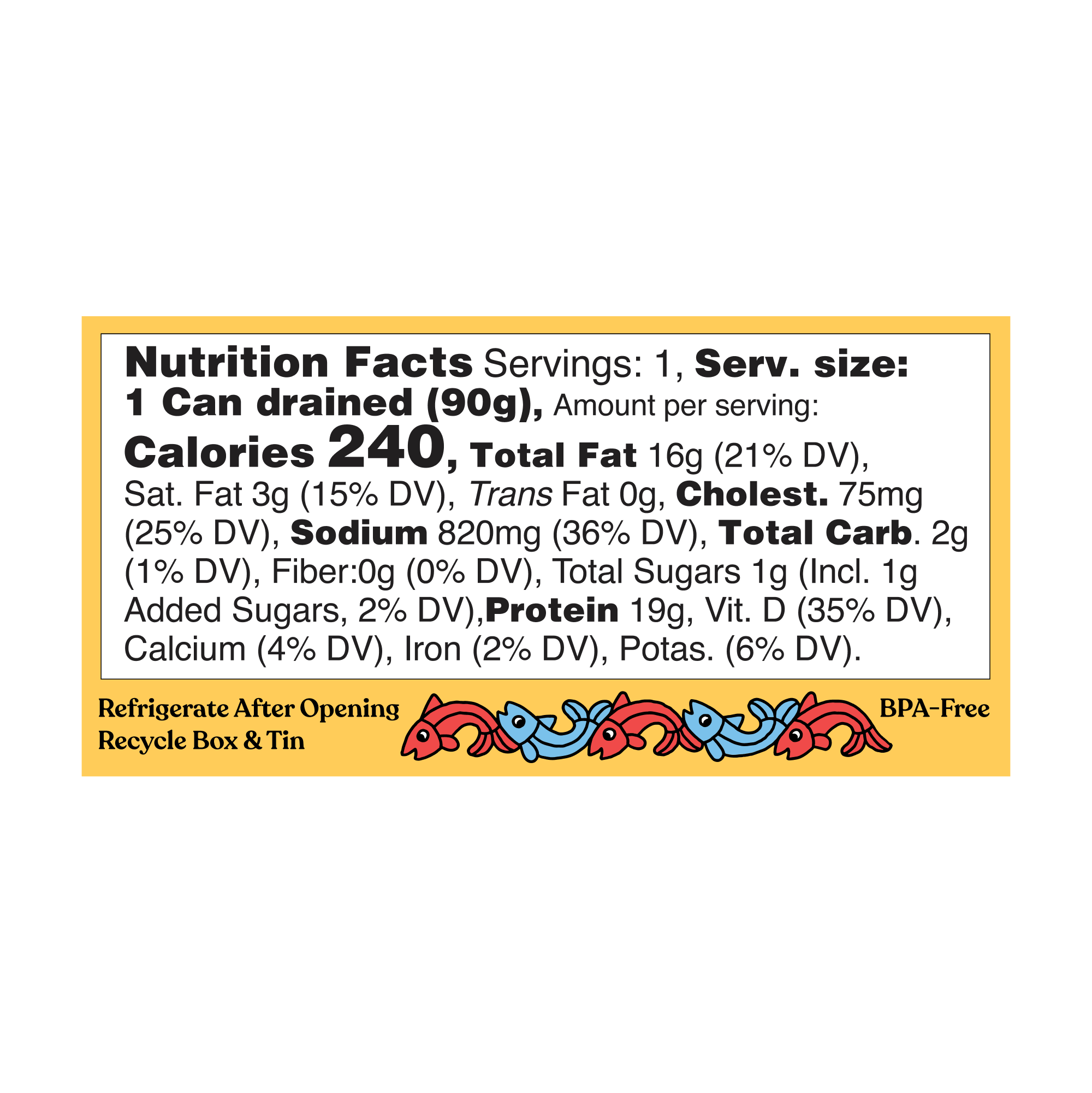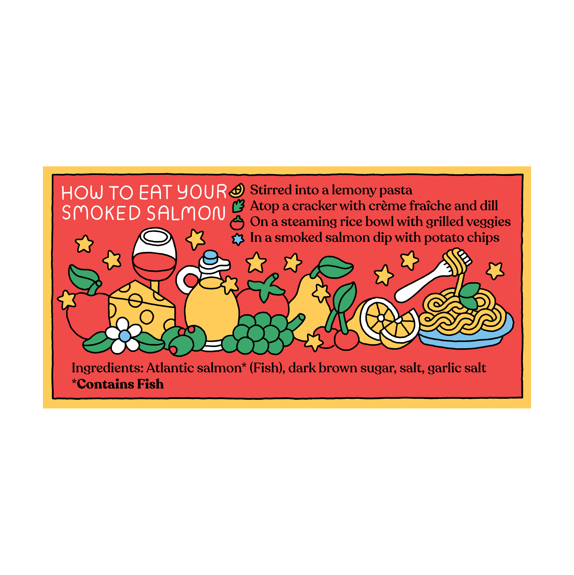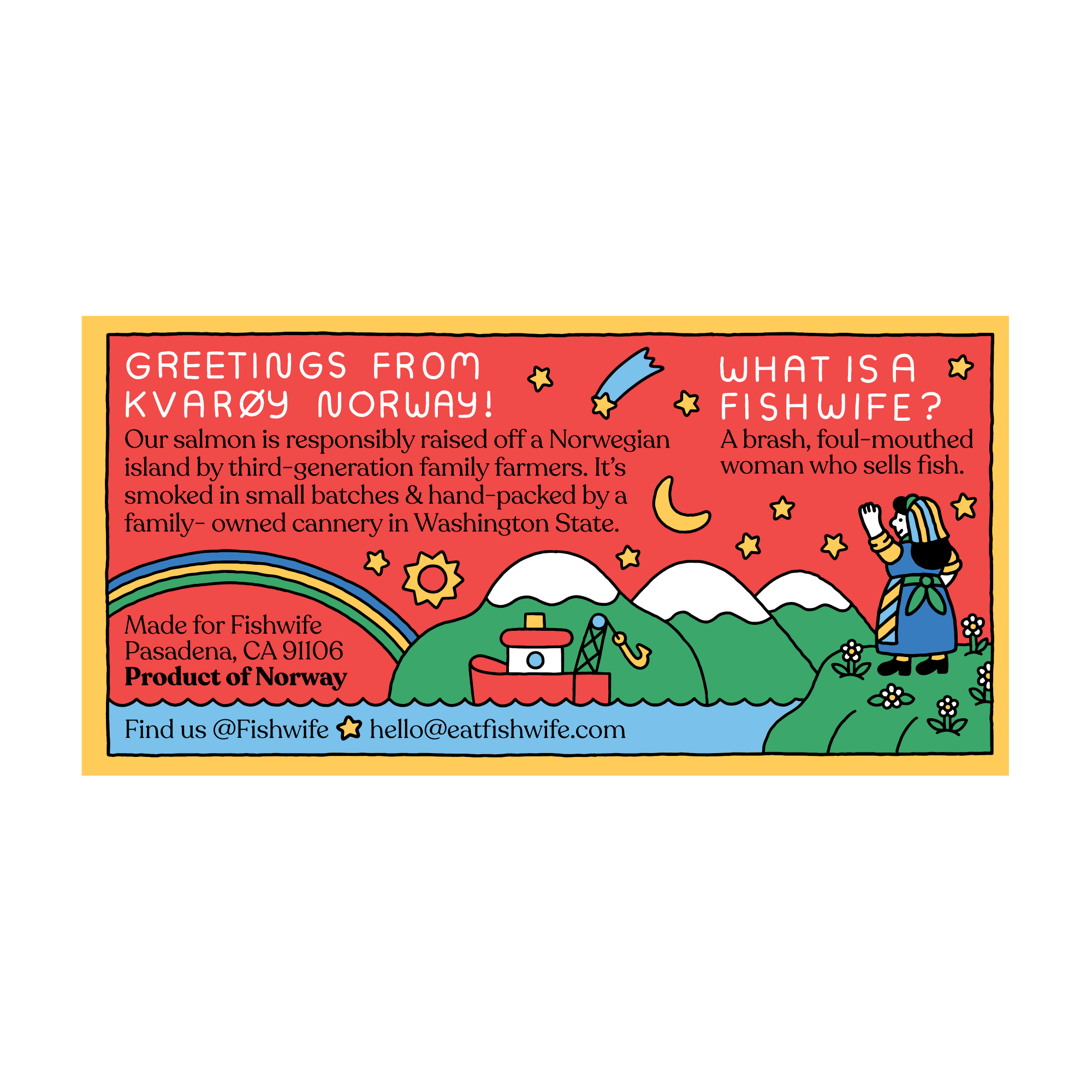Our smoked Atlantic salmon is: ✨ Brined in extra-virgin olive oil, natural sea salt, organic garlic salt, and organic brown sugar, smoked in small batches over a mix of beech, maple, and birch wood, hand-packed, and canned by fifth-generation family-run cannery on the central coast of Washington. ✨ Sourced directly from Kvarøy Arctic, the first finfish farm to carry the Fair Trade USA seal, and BAP, ASC and Global G.A.P. certification ✨ Raised by third-generation family farmers in the icy Arctic circle with deep ocean currents that keep the water fresh ✨ Fed a sustainable, nutrient-rich diet ✨ Raised without antibiotics or chemicals Our cans are BPA-free. Tin net weight is 3.2 oz and sold in a 6-pack case to retailers. Fishwife's tinned fish is perfect for picnics, protein-packed lunches, and dinner parties.