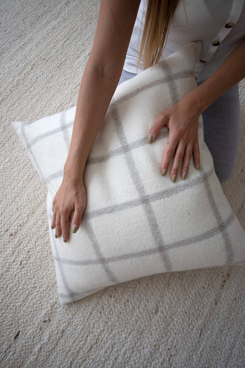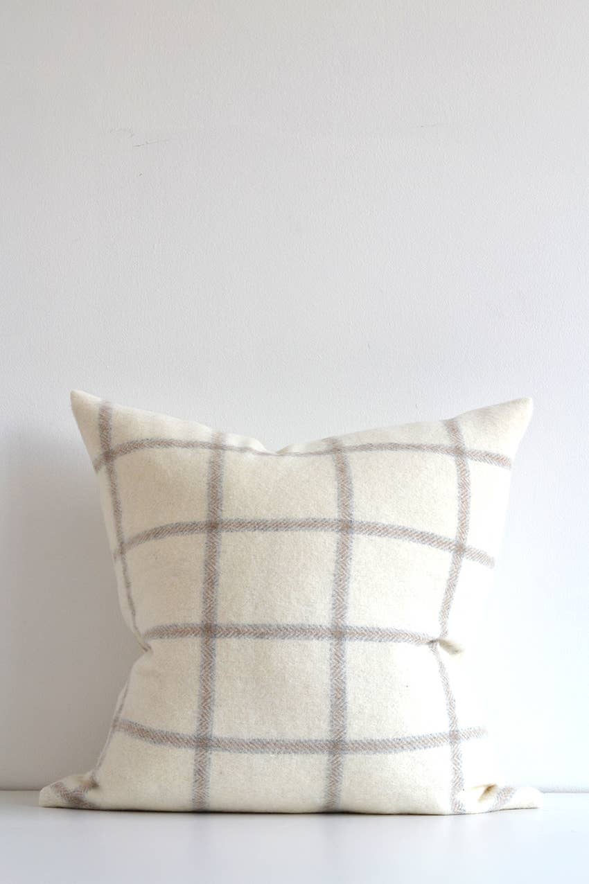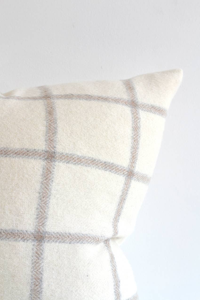 Madison Plaid Pillow | Off White, Dark Grey & Light Grey | 22” x 22”
